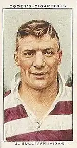 Jim Sullivan (2 December 1903 – 14 September 1977)[4] was a Welsh rugby league player, and coach.[1] Sullivan joined Wigan in June 1921 after starting his career in rugby union. A right-footed toe-end style (rather than round the corner style) goal-kicking fullback, he scored 4,883 points in a career that spanned 25 years with Wigan, and still holds several records with the club today.