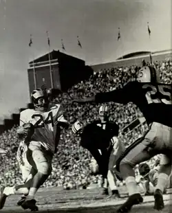 ![]() Van Pelt in 1957 against Minnesota at Old Memorial Stadium | |