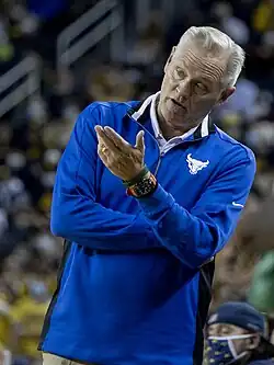 Jim Whitesell (born December 27, 1959) is an American college basketball coach who is an assistant coach for the Albany Great Danes men's basketball team. Prior to Albany, he was the head men's coach for the Buffalo Bulls. Previously he coached at the Division I level as a head coach at Loyola University Chicago and an assistant at St. John's and Saint Louis. Whitesell replaced Larry Farmer as head coach of the Ramblers on April 14, 2004. Whitesell was fired as head coach of the Ramblers on March 14, 2011, after seven seasons, posting a 109–106 record in that time.[1] Whitesell was hired in August 2013[2] as an assistant coach at St. John's to fill the void left by former director of basketball operations Moe Hicks. On April 16, 2015, he was named associate head coach of men's basketball at the University at Buffalo.[3] On April 6, 2019, Whitesell was named the 14th head coach of men's basketball at the University at Buffalo, filling the void left by Nate Oats when he resigned to take the head coach position at the University of Alabama.[4][5] On March 11, 2023, after four seasons and a 70–49 record he was fired as the Buffalo head coach.[6] He was named an assistant coach at Albany on September 14, 2023.[7]