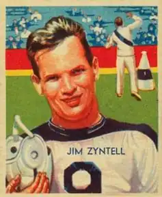 Ignatius James Zyntell (April 27, 1910 – November 13, 1992) was an American football offensive lineman in the National Football League (NFL) for the New York Giants and the Philadelphia Eagles.[2] He graduated from Boston College High School. He attended the College of the Holy Cross. He also played in 1936-37 for the Boston Shamrocks Boston Shamrocks of the American Football League. Zyntell also has the distinction of being the last person, alphabetically, in the all-time NFL players' register.[3]