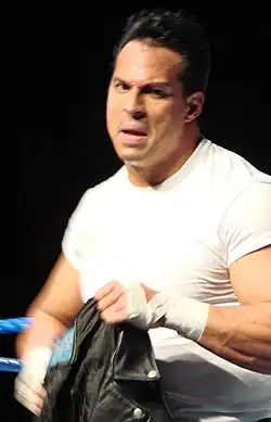 On the June 29 episode of SmackDown!, Domino suffered an injury during a match with Cryme Tyme, sidelining him for a month.[23] After Domino's return, the team began a scripted rivalry with Batista and Ric Flair.[24][25] On the August 31 episode of SmackDown!, he and Domino lost their tag team title to Montel Vontavious Porter (MVP) and Matt Hardy.[26][27] They engaged in a rivalry with MVP and Hardy, and attempted to regain their championship, but were unsuccessful.[28][29][30]