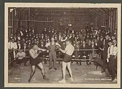 ![]() Jimmy Sharman Sr refereeing a boxing match between Prest and Lewis in the 1910s | |