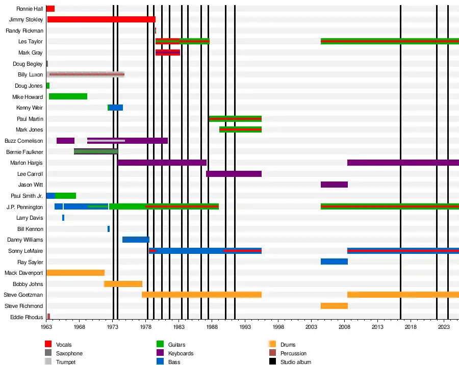 - Buzz Cornelison – keyboards, backing vocals, saxophone, trumpet (1964–1967, 1969–1981)