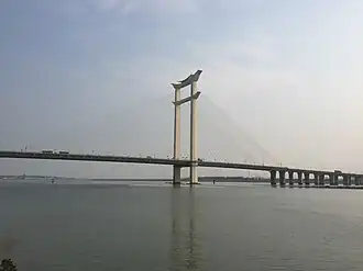 The Jin River Bridge (simplified Chinese: 晋江大桥; traditional Chinese: 晉江大橋; pinyin: Jìnjiāng Dàqiáo) is a cable-stayed bridge over the Jin River in Quanzhou/ Jinjiang, Fujian, China. The bridge measures 2,740 metres (8,990 ft) long, 38 metres (125 ft) wide, and approximately 132.125 metres (433.48 ft) high.[1]