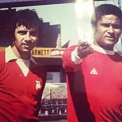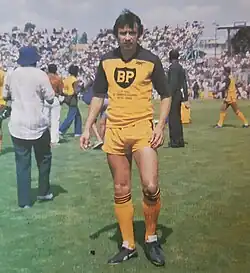 Pereira joined Chiefs in 1979 as the third white player in their history.[1] Pereira was later converted into a sweeper and was part of the legendary Glamour Boys side that won the quadruple in 1981[4] before retiring in 1983 with a 276-goal tally.[3] Pereira was even given an "African" nickname by the Chiefs supporters: "Baba ka Sibongile".[5]