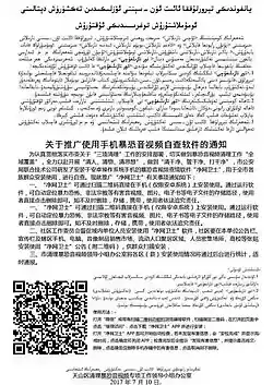 Police in China have reportedly forced Uyghurs in Xinjiang to download the application as part of a mass surveillance campaign on the eve of the 19th National Congress of the Chinese Communist Party.[3] They checked to ensure that individuals have it installed on their phones, and have arrested individuals who refused to do so.[3][7]