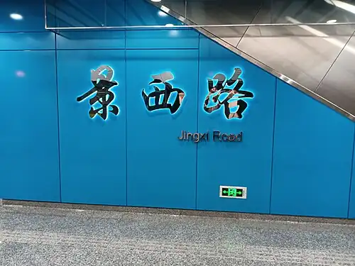 Jingxi Road (Chinese: 景西路; pinyin: Jǐngxī Lù) is a metro station on the Line 15 of the Shanghai Metro. Located at the intersection of Jingxi Road and Yindu Road in Minhang District, Shanghai, the station was scheduled to open with the rest of Line 15 in 2020.[1][2] However, the station eventually opened on 23 January 2021 following a one-month postponement.[3]