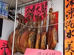 Jinhua ham (Chinese: 金華火腿) is a type of specialty dry-cured ham named after the city of Jinhua, where it is produced, in Zhejiang province, China.[1][2] The ham is used in Chinese cuisines to flavor stewed and braised foods as well as for making the stocks and broths of many Chinese soups. The ham was awarded first prize in the 1915 Panama International Merchandise Exhibition.[3]