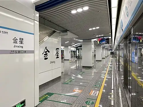 Jinxing (Chinese: 金星) is a metro station on Line 5 of the Hangzhou Metro in China. It is located in the Yuhang District of Hangzhou. It served as the western terminus of Line 5 before January 1, 2025, when East Nanhu station opened and took over that role.[1][2][3]