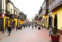Jirón Trujillo is an important street in Rímac District, part of the historic centre of Lima, Peru.[1][2] The street starts at the Puente de Piedra, where it is continued on the other side of the Rímac River by the Jirón de la Unión (with which it forms part of the historic centre's main axis),[1] and continues until it reaches the Alameda de los Bobos.[3] It therefore joins the so-called monumental zones of both Rímac and Lima districts.