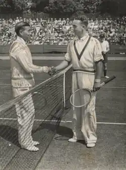 In October 1937 he was narrowly defeated in three sets by World no. 1 Don Budge at the Pacific Coast Championships in Berkeley.[8] He won his final singles title at the Japan International Championships on clay in Tokyo in October 1938 which was his third at the event (1933–34). He played his last tournament at the Newport Casino Invitational in August 1953 losing to Ken Rosewall in straight sets.