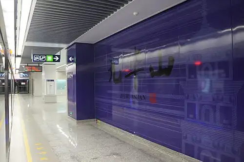 Jiuhuashan station (simplified Chinese: 九华山站; traditional Chinese: 九華山站; pinyin: Jiǔhuáshān Zhàn), is a station on Line 4 of the Nanjing Metro. The station is located underneath the intersection of Beijing East Road and Jiuhuashan Road. Construction began in June 2012 and completed on January 18, 2017 alongside seventeen other stations as part of the first phase of Line 4.[1] The start of construction was delayed by five months due to difficulty in relocating certain households whose land was required to construct the station.[2]
