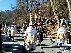 On Monday at noon, the Zubietar Joaldunak set off for Ituren (the road is only 3 km). The route follows the course of the Ezkurra river, which flows around the Mendaur mountain, a geographic coincidence that gives the region its name, Malerreka (from Basque "malda eta erreka", "slope and river").