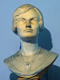 George Alexander,[59] who carved the reptiles on the stone architrave around the entrance to the Reptile House,[36][60] later sculpted a marble bust of Joan Procter which was exhibited in 1931 at the Royal Academy of Arts in London. Subsequently, presented to the Zoological Society, it is displayed with a commemorative bronze plaque at the entrance to the Reptile House at London Zoo.[61] Alexander's carved reptiles are said to have "satisfied Miss Procter’s meticulous desire for scientific accuracy as well as artistic beauty" [62] and the bust evidently meets similar criteria, being described as "the best likeness of her".[2]