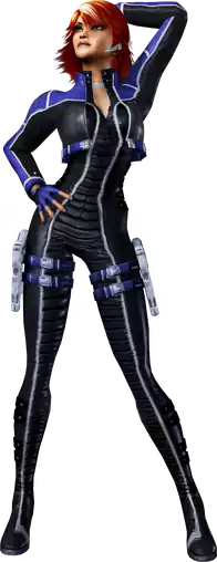 In Perfect Dark Zero, Joanna was redesigned by manga artist Wil Overton.[7] Overton added more distinctive elements, including a star tattoo on the left side of her neck, a blonde streak in her hair, and a choppy outline to her hairstyle.[7] Her hair was also changed from short and red to shoulder-length and orange. Hollis stated that while he liked the new concept work, he could not imagine why she would wear the orange. According to him, "It is uncharacteristic. Quite apart from the practical problem of being a beacon for bullets—Secret Agents don’t wear orange for good reason."[2] Process for her character design went through several alterations. Images of the initial concept were met with much derision among the fans who criticized Joanna's new manga-like appearance. In response, the developers chose to tone down some of the more stylized aspects of the design, eventually arriving at a more realistic appearance.[8] For the cancelled sequel Perfect Dark Core, Dark was altered to fit the game's realistic atmosphere, being described as a "smoking, flirting" version.[9]