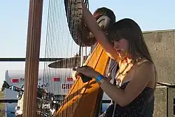 At five, Newsom asked her parents if she could learn to play the harp. Her parents eventually agreed to sign her up for harp lessons, but the local harp instructor did not want to take on such a young student and suggested she learn to play the piano first. She did, and later moved on to the harp which she "loved from the first lesson onward."[13] She first played on smaller Celtic harps until her parents bought her a full-size pedal harp in the seventh grade.[14]