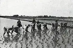 In 1922 Manglano married Maria del Pilar Baldoví y Miquel (1902-1999),[24] descendant to a noble Baldoví family,[25] owners of landholdings in Ribera Baixa;[26] she brought to the already opulent marriage the Tancat de la Baldovina, hundreds of hectares of rice-growing areas near Sueca.[27] The couple settled in Valencia, on calle Salvador;[28] they had 5 children, born between 1923 and 1933;[29] though some of them became known locally,[30] none grew to a nationally recognized figure.[31] Emilio Manglano, a military involved in CESID, was his nephew. Percival Manglano, a currently active Spanish politician, is his grand-nephew.[32]