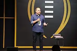 Joaquin Zihuatanejo (born 1971 in Dallas, Texas) is an American slam poet and teacher. In 2004, Zihuatanejo competed in the National Poetry Slam as part of the Dallas Poetry Slam team, which placed third.[1] He also appeared on HBO's Def Poetry in 2005.[2] In 2008, he won the Individual World Poetry Slam and was the winner of the World Cup of Poetry Slam in 2009.[2] He is a featured faculty member at the 2018 Conference on Poetry and Teaching at The Frost Place in Franconia, NH. Currently, Zihuatanejo resides near his hometown of Dallas with his wife and two daughters.[2] Outside of poetry, Zihuatanejo taught English and creative writing for seven years.[2]