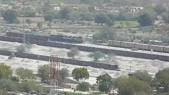 After that, the conversion of main line into 5 ft 6 in (1,676 mm) broad gauge was started in 2003,[5] Which it was important for military purpose because this railway line passes through nearest of International border of India, which was approved in the rail budget 1993–94.[6][7] was opened on 15 December 2006.[8]