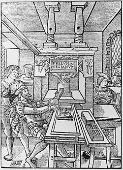 ![Another woodcut printer's mark of the Prelum Ascensianum ("press of Ascensius") in 1508.[7]](./_assets_/Prelum_Atcensianum.jpg)