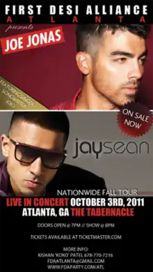 - ^ "Joe Jonas & Jay Sean announce co-headlining tour". Boston Music Spotlight. August 19, 2011. Archived from the original on February 2, 2016. Retrieved February 25, 2018.