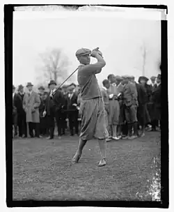 Kirkwood's success led him to England and Europe where, in his first competition, he defeated the great Harry Vardon. He began playing on the professional tour in the United States in 1923, winning that year's Houston Invitational, and was the first Australian to win on what became the PGA Tour. In 1924, he was one of the top-ranked golfers on the tour with five victories, three of which were consecutive. Kirkwood remains co-holder of the record for the widest winning stroke margin in PGA Tour history, set at the 1924 Corpus Christi Open in Texas.[1] That year he also teamed up with Walter Hagen to begin travelling around the globe putting on golf and trick-shot exhibitions, newsreels of which were sent back home to be shown in cinemas around the U.S.