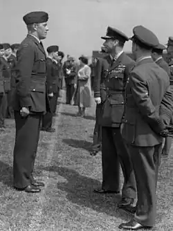 ![]() Joe McCarthy (left) with King George VI and Wing Commander Guy Gibson | |