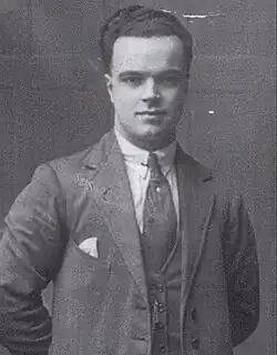 McKelvey participated in the Irish War of Independence 1919–1921 against the British, in which he commanded the IRA's 1st Battalion, Belfast Brigade.[11] In July 1920, during a wave of violence in the wake of the IRA assassination of a northern police inspector (Gerard Smyth) in Cork, McKelvey was expelled from his job by loyalist intimidation.[12] Roughly 7,000 other Catholics and left-wing Protestant political activists also lost their jobs in this manner at the time. Many of these unemployed Catholics were later recruited into the IRA. McKelvey later wrote to the IRA leadership that 75% of his volunteers were unemployed.[13] During this time McKelvey's men defended Catholics areas during attacks on Belfast's Catholic minority. These attacks became known as the Belfast pogroms.[14] On 22 August 1920, McKelvey helped to organise the killing of RIC Detective Oswald Swanzy in Lisburn.[15] The killing itself was carried out by IRA men from Cork, but McKelvey arranged a taxi to carry the assassins to and from the scene and disposed of their weapons. In reprisal for this shooting, 300 Catholic homes in Lisburn were burned out (see The Troubles in Ulster (1920–1922)).[16] McKelvey was forced to lie low in Dublin for some time after these events.