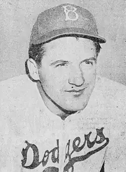 Medwick's 64 doubles in 1936 remains the National League record.[15] He also held the National League record with seven consecutive seasons with 40 or more doubles until Stan Musial topped it with nine.[15] In 1940, the Cardinals traded Medwick and Curt Davis to the Dodgers for $125,000 and four lesser-known players. While still a solid hitter, Medwick never excelled defensively, where the Cardinals felt he was losing some of the skills he displayed in his 1937 Triple Crown season.[16] Team president Branch Rickey and owner Sam Breadon also thought the trade would be best because they thought that Medwick was becoming increasingly discontented with being a Cardinal, having spent all season haggling with the pair over his contract.[17]