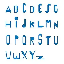 Introduced in 2018, Palermo is a full upper- and lower-case typeface, the letter forms of which were made by cutting up and rearranging the two component parts of Blinky Palermo's painted object "Blau Scheibe und Stab" (1968).[52]