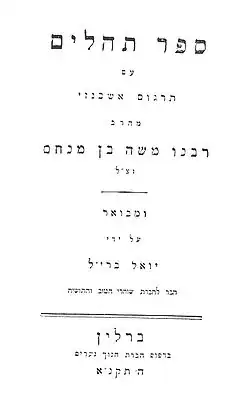 Löwe belonged to the bi'urists who assisted Mendelssohn in his commentaries on the Bible. His own main work was a critical Hebrew commentary and an excellent introduction to the Psalms (1788), which latter forms a history of Biblical poetry; and he published, also, Mendelssohn's German translation of the Psalms in Hebrew letters.