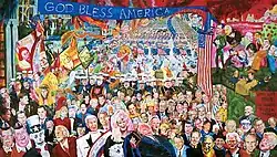 In 2004, Pelletier created a modern-day version of James Ensor's Christ's Entry Into Brussels in 1889 called American Fundamentalists: Christ’s Entry into Washington in 2008. Pelletier’s work adapts and expands Ensor's mockery of government, religious and business leaders, recasting the return of Jesus based on modern biblical interpretations of the late 20th century American Christian Fundamentalist and Christian Dominionist movements, especially of Left Behind author and activist Tim LaHaye. The work has been displayed throughout the United States and Europe, usually accompanied by presentations by and discussion with the artist.[1][2]