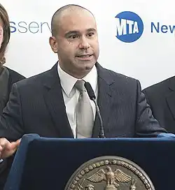 Joel Rivera (born October 24, 1978) is an American politician who served as a member and the majority leader of the New York City Council. First elected to the Council in a special election in 2001 at 22 years of age,[1] Rivera became the youngest elected official in the city's history.[2] He continued to win re-election until reaching his legal term limit in 2013.