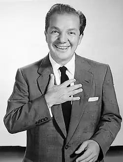 On September 7, 1952, The Joey Adams Show debuted on WAAM-TV in Baltimore. The comedy-variety program was broadcast on Sunday nights from 10 to 10:30 p.m. Eastern Time "with a large weekly talent budget".[11] He made numerous other TV appearances over the years, including on The Ed Sullivan Show, Howard Stern's 1990s TV shows, and What's My Line? He was in the films Singing in the Dark (1956, of which he was also executive producer), Don't Worry, We'll Think of a Title (1966), and Silent Prey (1997). For many years, he hosted a radio talk show on WEVD in New York.[2] In addition, Adams also hosted the short-lived 1953 game show Back That Fact on ABC.[12]