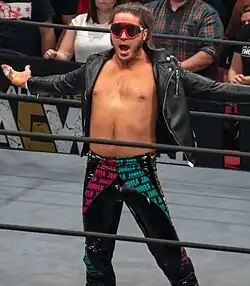 In January 2019, it was revealed that Janela would be one of the first signees to All Elite Wrestling (AEW), a new wrestling promotion started by sports executive Tony Khan and wrestlers Cody and The Young Bucks.[27][28][29] It was later revealed that Janela had signed a three-year deal with the promotion.[30] His deal allowed him to still work independent wrestling dates.[31]