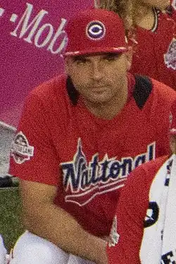 Joseph Daniel Votto (born September 10, 1983) is a Canadian-American former professional baseball first baseman who spent his entire 17-year Major League Baseball (MLB) career with the Cincinnati Reds from 2007 to 2023. He was the second Canadian player, following Larry Walker, to have 2,000 hits, 300 home runs, and 1,000 runs batted in (RBI) in MLB.[1] Votto is a six-time MLB All-Star, a seven-time Tip O'Neill Award winner, and two-time Lou Marsh Trophy winner as Canada's athlete of the year.[2] In 2010, he won the National League (NL) Most Valuable Player Award and Hank Aaron Award. Renowned for his plate discipline and ability to get on base, Votto was first in career walks (1,365), third in on-base percentage (.409), and fourth in on-base plus slugging (.920) among all active players at the time of his retirement during the 2024 season. He is one of two Reds with at least 300 home runs, 1,000 RBI, and 2,000 hits in franchise history, the other being Johnny Bench.