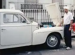 ![]() Joginder Singh, pictured in London in the 1990s alongside the restored Volvo PV544 (KHT 184) with which he won the 1965 Safari Rally | |