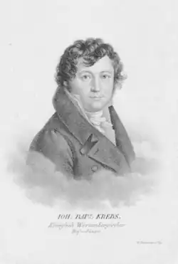 Krebs was a vocalist at the Württembergischer Hofoper in Stuttgart, where he was also the librettist of several operas. On his name day Carl Maria von Weber composed the (lost) burlesque "Antonius" in 1808 or 1809. Today, however, he is mainly known as the author of esoteric and Masonic scripts, which he published under the pseudonym Johann Baptist Kerning.