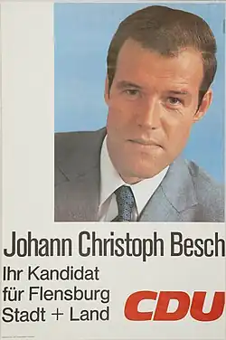 ![]() Candidate poster Johann Christoph Beschs for the 1972 federal elections | |