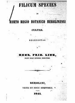 - Filicum species in horto regio Berolinensi cultae (Berlin 1841) (Fern species in Berlin botanical garden)