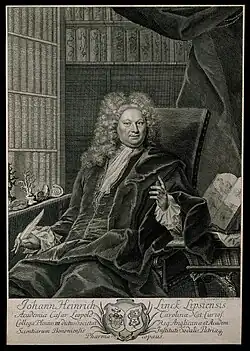 Linck was born in Leipzig where his father, Danzig-born Heinrich Linck (1638–1717), ran the family pharmacy known as "Goldenen Löwen"/"The Golden Lion".[2] His mother Benigna was the daughter of a goldsmith. His early training was at his father's pharmacy and in 1690 he went to Copenhagen to study under the pharmacist J.G. Becker. In 1693 he made a trip to Sweden and in 1696 he visited Danzig where J. Breyn and J.T. Klein inspired his future work in natural history. He then made another tour around Europe and England in which he met Hans Sloane. From 1706 he worked at this father's pharmacy in Naumburg and from 1710 he went back to Leipzig and worked with his brother. Alongside his interest in medical and chemical studies he began to study starfish. He wrote a treatise on sea stars, De stellis marinis liber singularis (1733). In this he created a major systematic division of the asteroids and ophiuroids based on the presence or absence of the ambulacral groove. The genus Linckia of sea stars and a fossil Protorosaurus linckii are named after him. He was inducted into the Leopoldina academy in 1722 and was a member of the Royal Society of London.[3]