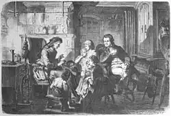 The Volksmärchen have been frequently reprinted (Düsseldorf, 1903, etc.) and translated. Five of the tales were translated into English by Thomas Beddoes as Popular Tales of the Germans (1791),[13][14] and three were included in German Romance (1827) translated by Thomas Carlyle.[15] They were also translated into French a number of times, including as Contes populaires des Allemands (1803) by J. Lefèvre,[16] a translation of two of the stories by Isabelle de Montolieu (1803),[17] and another complete translation with an introduction by Charles Paul de Kock (1826)[18] among others.[19]