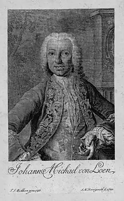 Johann Michael von Loën (11 December 1694 in Frankfurt am Main - 24 July 1776 in Lingen, Ems) was a German writer and statesman. His The Honest Man at Court 1748, was translated into English in 1997.[1] He was great uncle of Goethe, born in 1749.[2]