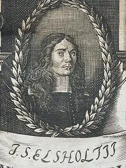 Johann Sigismund Elsholtz (26 August 1623 – 28 February 1688), (some sources mention his day of birth as 28 August, and his death on 19 February) was a German naturalist who was a native of Frankfurt an der Oder.