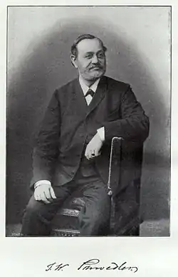 He spent the remainder of his career as a civil servant, becoming chief engineer for the Royal Prussian Railways and during a period of rapid expansion: between 1860 and 1890 the Prussian railway system grew from less than 5,800 km of rails to more than 26,300 km, from approximately 600 stations to 4,200, and numerous rivers and valleys were bridged for both railways and roads.[5] During that time he oversaw in some manner every major piece of construction in Prussia and subsequently the German Empire.[6] In 1868 he was promoted to Geheimer Baurat and became the highest ranking construction employee in the Prussian Civil Service. He also returned to publishing, developing with Friedrich August von Pauli, Johann Caspar Harkort, and Heinrich Gerber a complete theory and praxis of steel construction;[7] his Theorie der Brückenbalken-Systeme, volume 1 (1862)[8] and Resultate über die Konstruktion der eisernen Brücken (1865)[7] were particularly influential. Shortly after his return to Berlin, he became an instructor at the Academy of Construction, and after 1864 he was an examiner there; his teaching greatly improved the training in the field.[9] He was on the editorial board of the Zeitschrift für Bauwesen for many years.