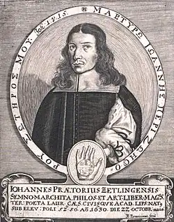 Johannes Praetorius (latinization of Hans Schultz, also called Praetorius Zeitlingensis to differentiate him from others with the same pen name; October 22, 1630 – October 25, 1680) was a German writer and historian.