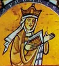 Archbishop Job died on 1 February 1204. Emeric, who intended to go on a pilgrimage to the Holy Land, did not want to leave his country in uncertainty. Having fallen seriously ill, Emeric wanted to ensure the succession of his four-year-old son, Ladislaus. However Job's successor, archbishop-elect Ugrin Csák died before the coronation. As a result, the event was performed by John of Kalocsa on 26 August 1204.[15] The dying king set his brother free and made him regent for the period of Ladislaus's minority. On 30 November 1204, King Emeric died, and Ladislaus III succeeded him. Pope Innocent sent a letter to Duke Andrew, warning him to respect the child king's interests. In April 1205, the pope sent a letter to John, who became de facto head of the Church in Hungary, and other prelates to support Ladislaus and his mother Queen Constance of Aragon. John was also commissioned to excommunicate the minor Ladislaus' enemies.[16] Considering her son's position to be insecure, Constance fled to Austria, taking Ladislaus with her.[17] The young king suddenly died there on 7 May 1205. Following that John crowned Andrew king in Székesfehérvár on 29 May 1205.[15]