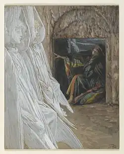 ![]() Mary Magdalene Questions the Angels in the Tomb by James Tissot, c. 1890 | |