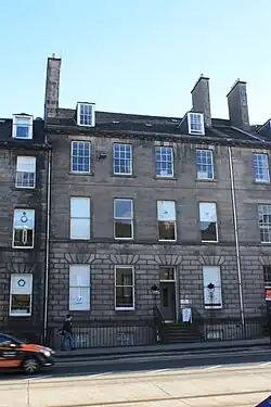 He died suddenly while entering his carriage[17] at the front of his home, 19 York Place, Edinburgh, 14 November 1844.[14] An autopsy showed that the cause of death was ruptured coronary artery.[14] The pathologist, Adam Hunter, speculated that his death had been brought about by excessive bloodletting.[7] He is buried against the east wall of St Cuthberts Churchyard adjacent to the gateway into Princes Street Gardens.