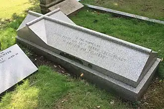 He died on 7 October 1924 and is buried in Dean Cemetery in Edinburgh at its east side, close to the main entrance.